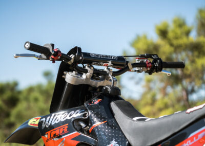 Similarly, FMF does not offer a Shorty for these models, so we crafted some custom Shorty silencers. For a detailed view of this process, watch the comprehensive build video of all five bikes, but a heartfelt thanks to Robbie’s Pipe Repair and our friend Dallas for making these Shorty Silencers a reality.